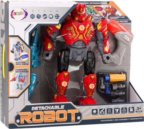 Efter samling kan batteriet fra boremaskinen bruges som robotens drivkraft. Lys- og lydeffekter gør legen mere realistisk og endnu mere spændende.