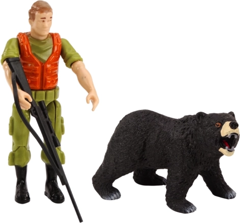 Sættet inkluderer også en jægerfigur udstyret med et våben samt en bjørnefigur. Disse ekstra elementer gør det muligt for børn at genskabe forskellige jagtscener, udvikle deres fantasi og kreativitet. De kan efterligne forskellige situationer som ekspeditioner i vildmarken, møder med vilde dyr eller redningsaktioner.