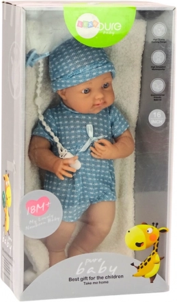 Fremstillet af materialer i højeste kvalitet og med fokus på sikkerhed, ligner dukken en rigtig baby, hvilket giver autenticitet og dybde til børns oplevelser. Den medfølgende sut på snor og det bløde tæppe understøtter skabelsen af alsidige legescenarier.