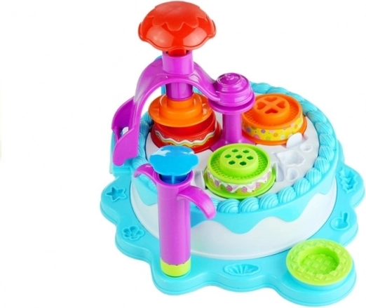 Den store base formet som en kage og de mange forme indbyder til dekoration. Form glasur, pynt og lys, pres mønstre og lav den flotteste “kage” efter egen fantasi.