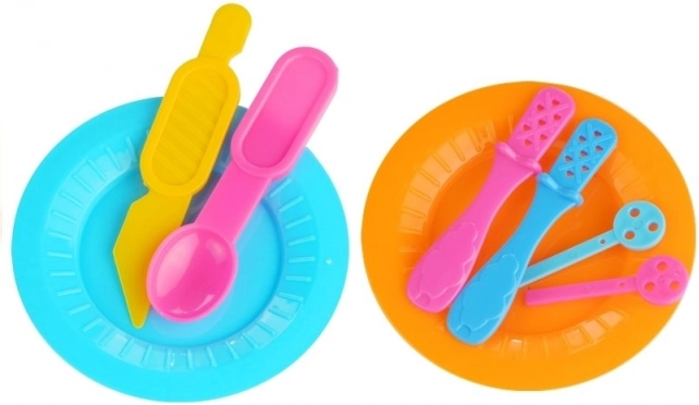 Tallerkener, bestik og udpresser med mundstykker er lavet af certificeret plast, har mål tilpasset små hænder og støtter selvstændighed samt finmotorik.