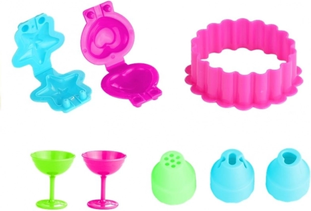 Praktiske tilbehør – knapbetjent udpresser med mundstykker, tallerkener, bestik og flere forme – er lavet af sikker, certificeret plast. Massens smitter ikke af og fedter ikke, og skulle den komme på tæppet, kan den efter tørring let fjernes. Sættet er CE-mærket og ideelt til fælles leg og udvikling af finmotorik, fantasi og skaberglæde.