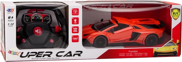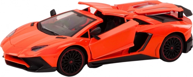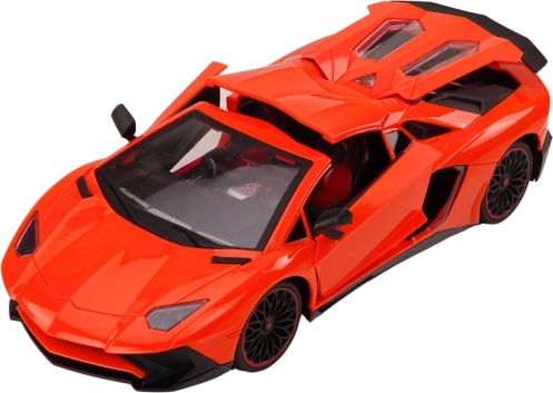 Den orange karrosseri med detaljer i sort skaber et autentisk look af en sportsvogn. Alle døre kan åbnes og øger realismen.