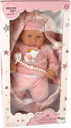 Dukke Baby med Sut og Svøb 46 cm Lyserød