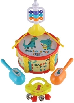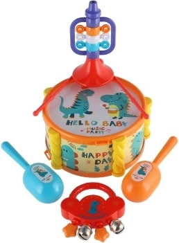 Denne musikalske børnesæt præsenterer en legesyg måde at bringe små børn tættere på musikkens og rytmens grundlæggende elementer. Hvert instrument i sættet er farverigt og nemt at bruge, hvilket hjælper med at udvikle ikke kun musikalske evner, men også finmotorik.