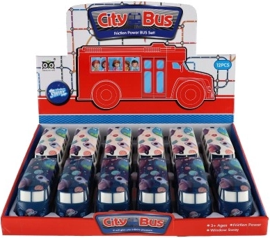 Den rum-inspirerede plastbus med friktionsmotor er et perfekt supplement til enhver lille chaufførs samling. Den måler 13 cm og vil med sit livlige design begejstre alle børn. Den er lavet af holdbar plast og fås i to farver, hvilket øger dens attraktivitet. Bussen er designet til at fremme børns kreativitet og fantasi gennem leg.
