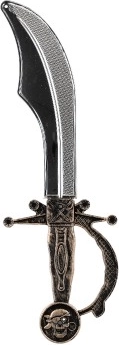 Grebsdekoration og klingens metal-look giver rekvisitterne en autentisk piratstil, der skiller sig ud på fotos og til karnevalskostumer.