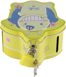 Denne børnesparebøsse i metal er en fantastisk hjælp til at lære børn at spare og øve talfærdigheder. Metaludførelsen sikrer lang holdbarhed, sprækken på toppen gør det nemt at lægge mønter i, og den praktiske lås holder opsparingen sikker.