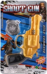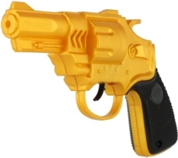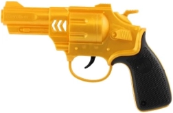 Denne plastpistol med svinghjul er det ideelle valg til små eventyrere. Den behøver hverken projektiler eller batterier – underholdningen står det mekaniske svinghjul for, som under legen afgiver en karakteristisk lyd. Takket være den robuste konstruktion og lave vægt er pistolen let at betjene og sikker for børn.