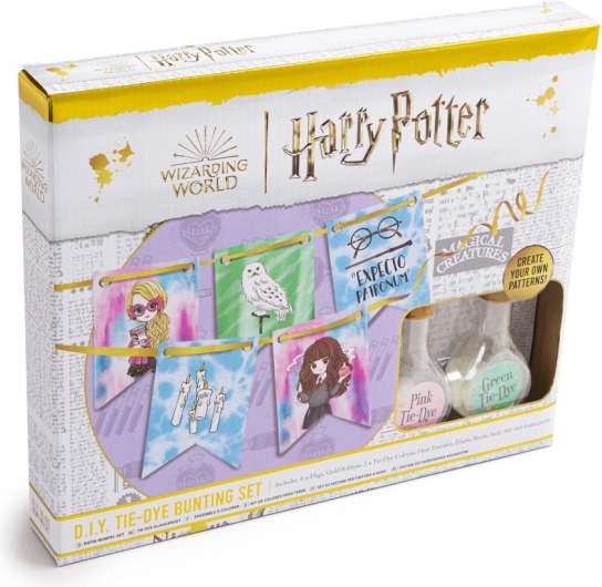 Gør enhver fest til en magisk begivenhed. Batiksættet til flagguirlander med officiel Harry Potter-licens gør det let at skabe personlige dekorationer med en iøjnefaldende tie-dye-effekt. Takket være de medfølgende farver og tilbehør er processen enkel, sjov og egnet selv for begyndere.