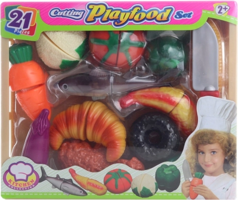 Sjovt og sikkert skæresæt til børn med 21 stykker mad, der hænger sammen med velcro. Børn kan ”skære” maden igen og igen, træner finmotorik, koordination og lærer at kende forskellige typer grøntsager og brød. Ideel legetøj til børn fra 2 år.
