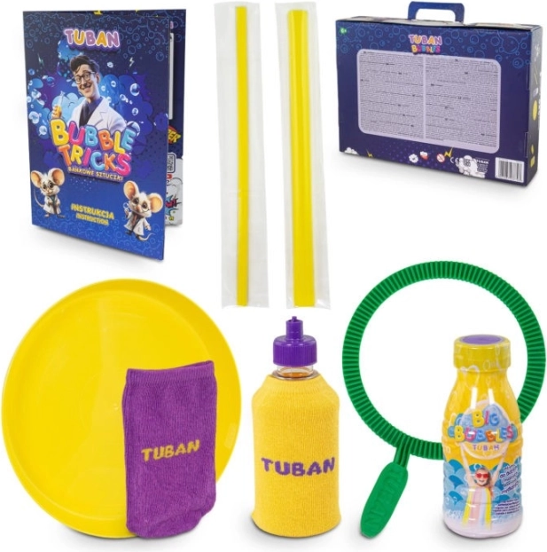 Tuban Bobletricks-sættet gør det muligt at udføre op til 10 forskellige tricks, der garanteret vil fange ethvert barns interesse. Takket være den vedlagte detaljerede instruktion kan du nemt mestre hvert trin, og desuden er der tilføjet en QR-kode til hver eksperiment med link til en video, der viser trickets trin.
