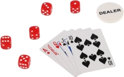 Sættet indeholder 300 jetoner i fem forskellige farver, to spil kort og fem terninger, hvilket gør det muligt at spille forskellige kort- og terningspil.