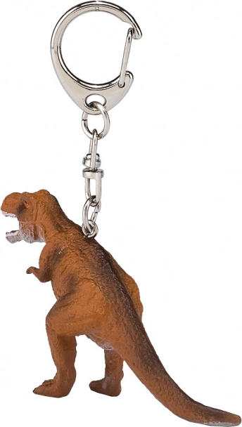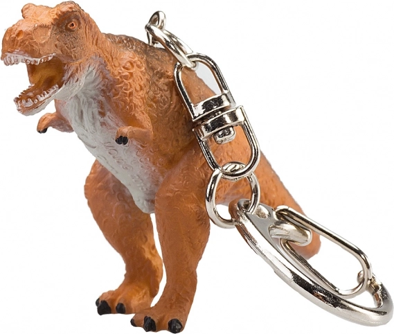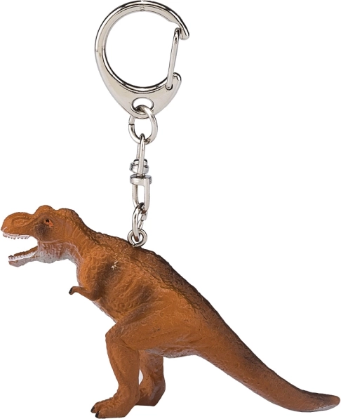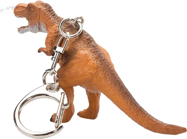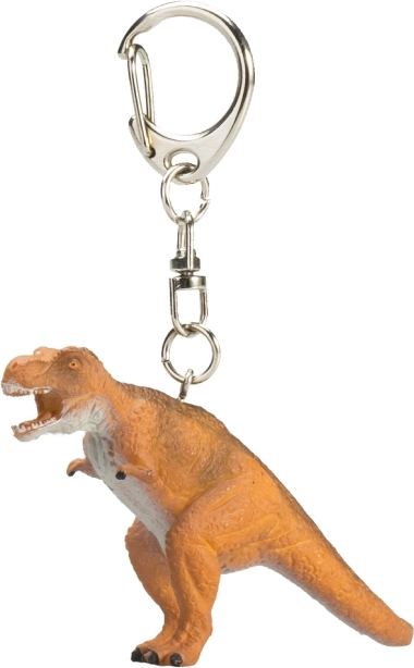 Dinosaurfiguren på nøgleringen er udført med realistiske detaljer, der efterligner en ægte Tyrannosaurus rex.