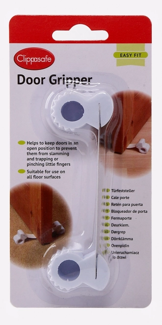 Clippasafe dørstop holder døren åben og forhindrer, at børn smækker med døren og får fingrene i klemme.