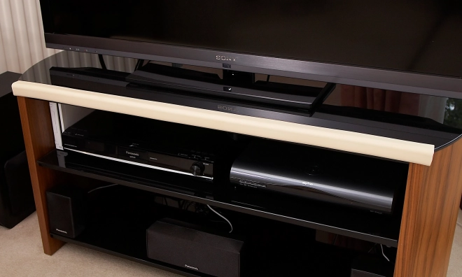Den medfølgende selvklæbende tape gør det hurtigt at sætte fast på borde, hylder og TV-borde.