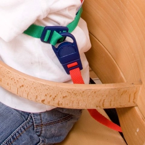 Pålidelig fastspænding i højstol eller klapvogn og tryghed under gåture i byen eller i butikker.