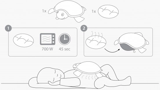 Tip: Læg den opvarmede pude i sengen før sengetid for en behagelig varme og en følelse af tryghed. Følg altid sikkerhedsanvisninger ved opvarmning og brug under opsyn af en voksen.