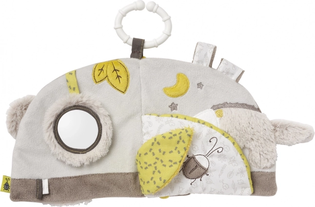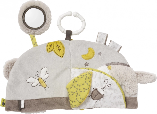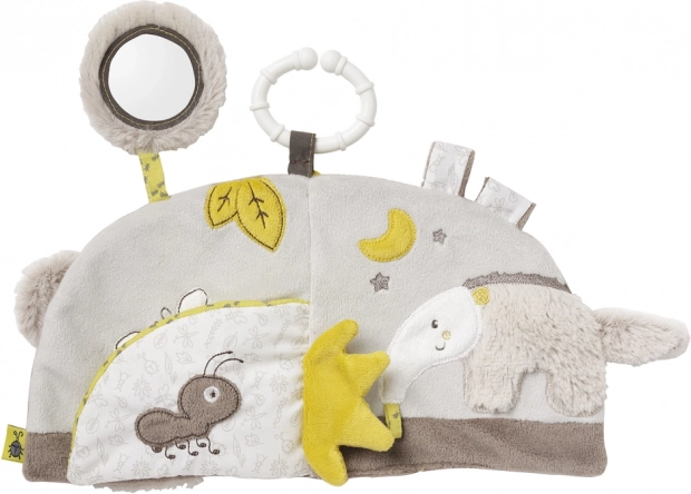 Denne kreative plys-bog er ideel til at stimulere og udvikle barnets sanser. Takket være den praktiske strop kan bogen bruges ikke kun i barnevognen, men også i sengen, i bilen eller hvor som helst det er nødvendigt. Med sit attraktive visuelle design, brug af farver og spejl fanger den nysgerrige børneøjne. De forskellige materialer og ranglelyden tiltrækker også barnets opmærksomhed.