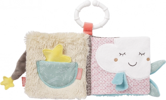 Blød, knitrende stofbog til babyer med bideringe og ringe