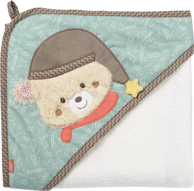 Perfekt absorberende børnehåndklæde med hætte fra kollektionen Havets Børn tørrer hurtigt dit barn og giver beskyttelse mod kulde og træk.