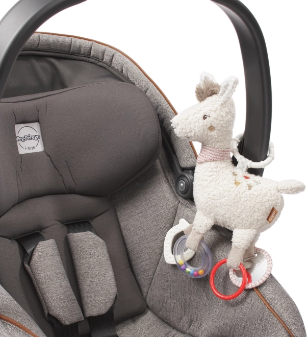 Det er et krammeblødt plysdyr og en beskytter i ét, som hurtigt bliver et barns ven. På benene har den spændende legetøj, der understøtter motoriske færdigheder og giver masser af glæde. Den usædvanlige form og de forskellige materialer giver en fantastisk taktil og sansemæssig oplevelse. Lamalegetøjet giver den bedste underholdning på farten. Det kan hurtigt fastgøres til barnevogne og autostole.