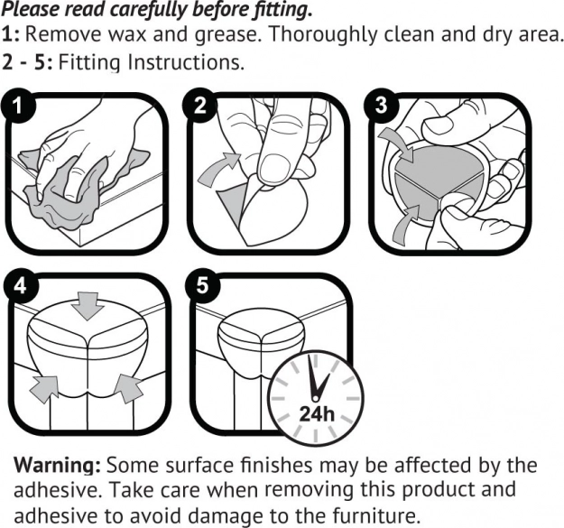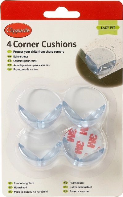 De gennemsigtige plast-hjørnebeskyttere fra Clippasafe giver med deres ekstra blødhed maksimal beskyttelse til små børn i deres første gå-fase. De dækker pålideligt de skarpe hjørner på glasborde, hylder, pejse og andet møbel, som småbørn ofte kan støde ind i.