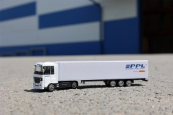 Udvid din vognpark med en realistisk model af PPL-lastbil i skala 1:87. Metalkabine, plasttrailer af PVC, længde ca. 20 cm og friløb for jævn kørsel gør den til både en fantastisk samlergenstand og legetøj for små og store fans af godstransport.