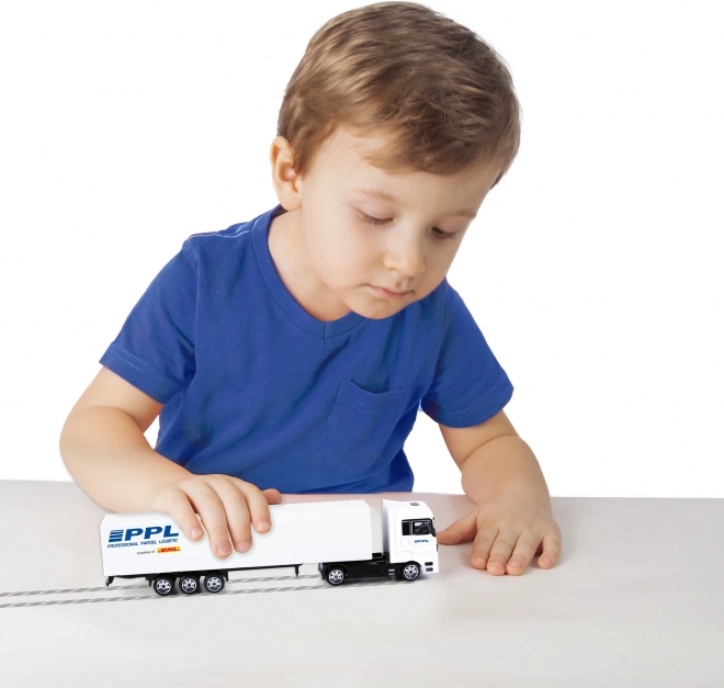 Detaljeret print “Professional Parcel Logistic” og PPL’s karakteristiske farver giver modellen et professionelt udseende, der gør sig godt både i leg og i montre.