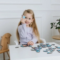 Vi tilbyder dig træpuslespil, der bringer en helt ny dimension til puslespil. Sættet indeholder 50 brikker, hvoraf 10 er i form af unikke figurer, hvilket giver en interessant udfordring ved samling. Du vil også værdsætte kvaliteten af udførelsen og detaljerne i hver stykke, inklusive det dekorative mønster på bagsiden.