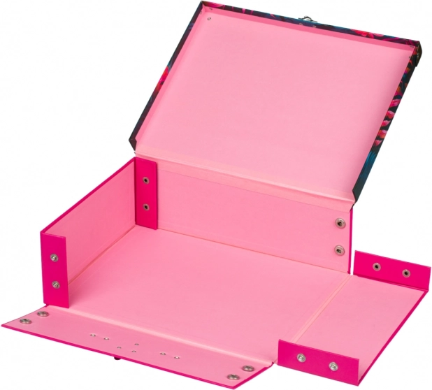 Stilfuld sammenklappelig kuffert med et markant motiv af flamingoer og tropisk flora til skolebørn. Udstyret med beslag for øget holdbarhed og et elegant udseende.
