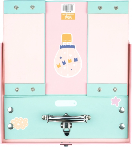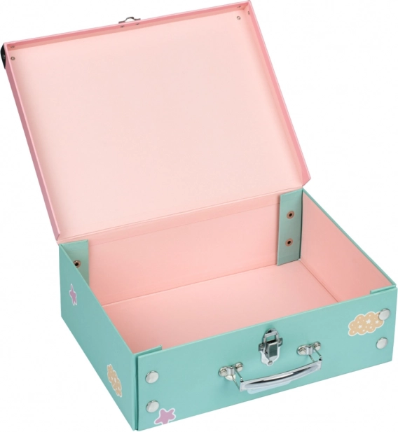 Kufferten har en metalhank og lukkes med et klassisk spænde. Det unikke system med trykknapper gør det nemt at folde den sammen og skille den ad, hvilket letter opbevaringen, når den ikke er i brug. Ideel til børn og rejser og sikrer en sikker og sjov transport af deres yndlingslegetøj eller ting til skole.