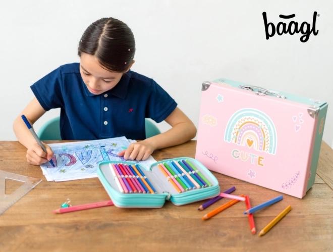 Gør rejser sjovere med den sammenklappelige børnekuffert med regnbuemotiv. Denne kuffert er lavet af stærkt lamineret papir, som sikrer dens holdbarhed og robusthed. Takket være metalhjørnerne er den beskyttet mod slid og skader.