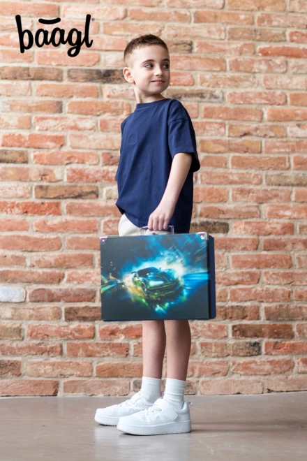 Sammenfoldelig skolesæt til små racerkørere, der kombinerer funktionalitet og design. Ideel til transport eller opbevaring af skoleartikler med fokus på hastighed og spænding.