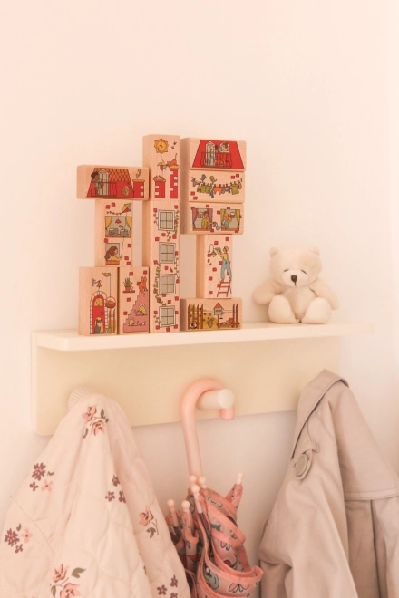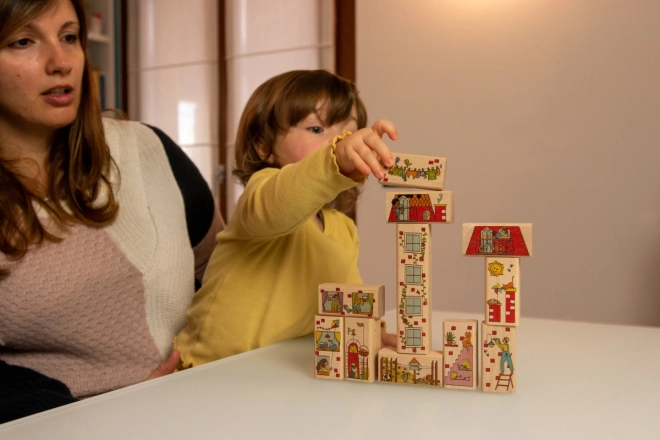Hver klods er udsmykket med farverige illustrationer, som stimulerer fantasien og giver læringsmæssig værdi.