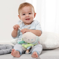 Takket være den praktiske størrelse, ophængsløkken og de douce farver passer den i ethvert børneværelse og i barnevognen på tur. De bløde, kvalitetsmaterialer er skånsomme mod den sarte babyhud og er lette at vedligeholde.