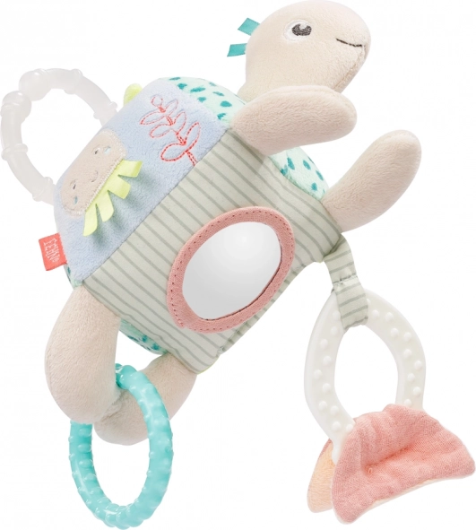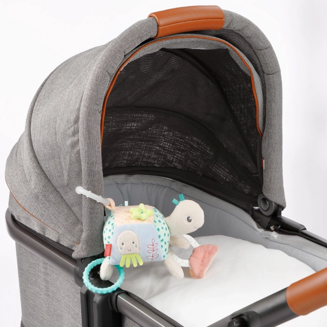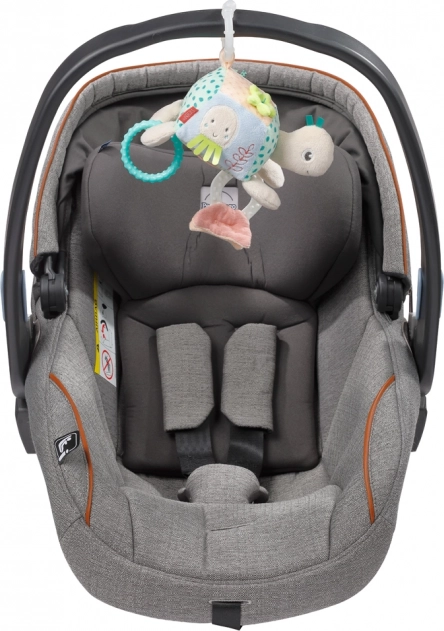 Takket være den praktiske C-ring kan stofklodsen med havdyr nemt fastgøres på barnevogn og autostol, så den hurtigt bliver barnets trofaste ledsager!
