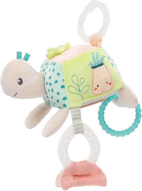 Med den spændende lærings- og aktivitetsklods fra kollektionen Børn af Havet vil barnet gennem leg opdage nye ting. Rasle, farverig gribering, blødt bidelegetøj, knitrepapir, spejl og klokke tilbyder forskellige legemuligheder og støtter barnets opmærksomhed samt hånd-øje-koordination.