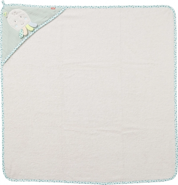 Børn kan putte sig trygt i håndklædet – den søde hætte med blæksprutte holder hovedet varmt. Hverken daglig brug eller hyppig vask skader den plyssede havskabning eller den bløde badeponcho.