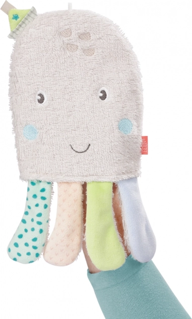 Denne søde vaskehanske med havdyr fra kollektionen Børn af havet giver perfekt badeunderholdning takket være de blide farver og det bløde materiale.