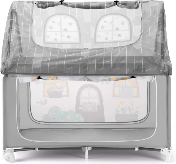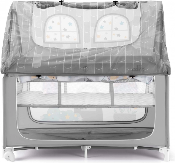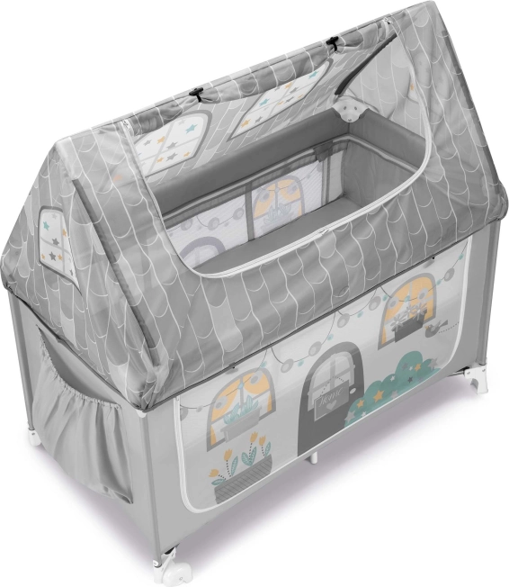 Børnesengen Daily Dolci Sogni udmærker sig med sin stærke metalramme og bløde, elastiske tekstil, hvilket gør den meget praktisk og sikker. Begge sider af huset er udstyret med gennemsigtige netpaneler, som giver et godt overblik over barnet og nem adgang. Hustaget kan åbnes, hvilket gør håndtering og adgang til barnet lettere.