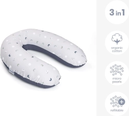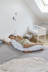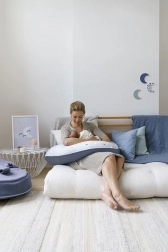 Doomoo Buddy giver komfortabel støtte takket være den ergonomiske form, hvilket muliggør fuldstændig afslapning under graviditeten og efter fødslen.