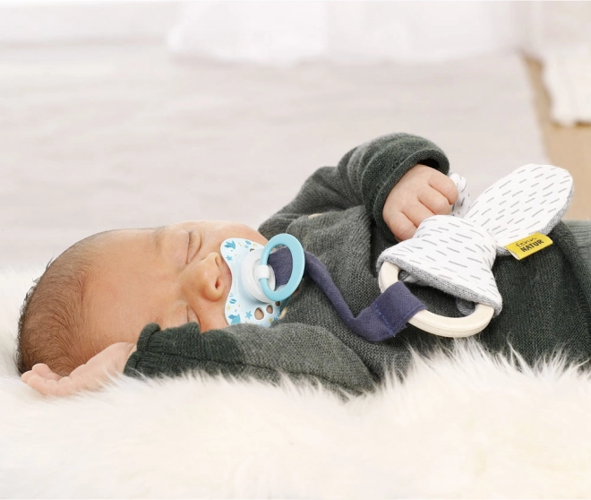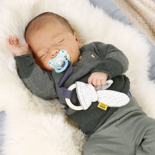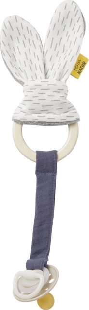 Den søde suttekæde med æselører er let at gribe fat i og stimulerer berøring og leg. Med de to ringe kan sutten nemt fastgøres og dermed forhindre, at den bliver væk. Æselørerne er lavet af 100 % økologisk bomuld.