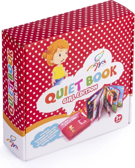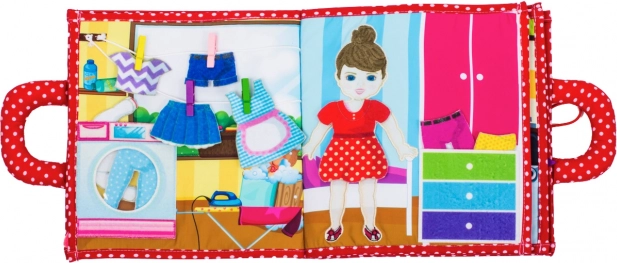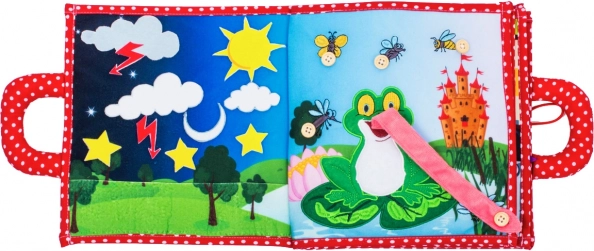 Blød, knitrende stofbog til babyer med bideringe og ringe