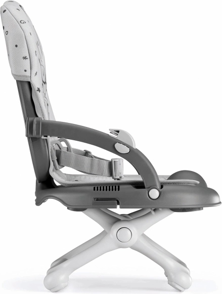 Smarty Pop følger dit barn – fra en sikker bærbar højstol med bakke til mindre børn til et sæde uden bakke til at spise sammen med familien. Det anatomisk formede sæde med blød betræk giver komfort, mens skridsikre fødder og 3-punkts sele sikrer nødvendig stabilitet og sikkerhed.
