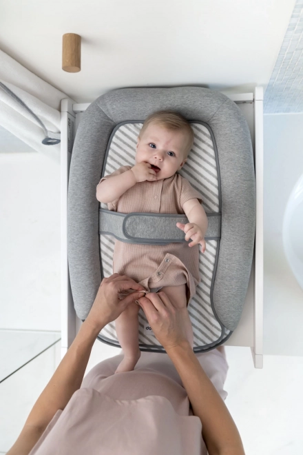 Doomoo Cosy Care måtten er udstyret med en sikkerhedsrem, der holder dit barn i en sikker position under skiftning.