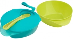 Til træning i selvstændig spisning kan den smarte Magic Mat bruges, som fastgør skålen sikkert til bordet. Denne måtte sælges separat. Tåler mikrobølgeovn, opvaskemaskine og fryser. Fri for bisphenol A (BPA), hvilket gør den sikker for børn fra 6 måneder.