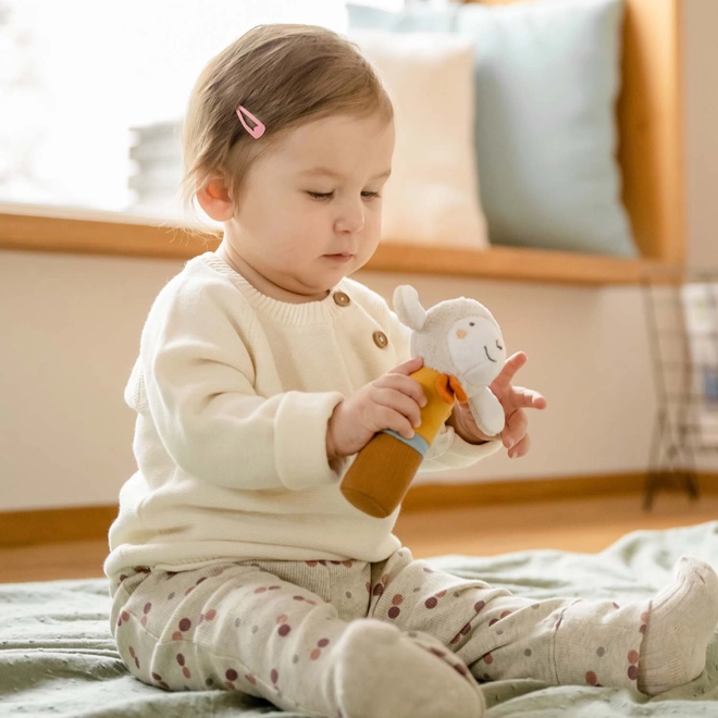 Den babyvenlige rangle er ideel til at gribe og kramme og er altid sammen med din baby – i sengen, autostolen eller barnevognen. Den stimulerer barnets følesans, hørelse og motorik. De behagelige rangletoner fanger barnets opmærksomhed og kan aflede det selv, når noget har gjort det så ked af det, at det græder.