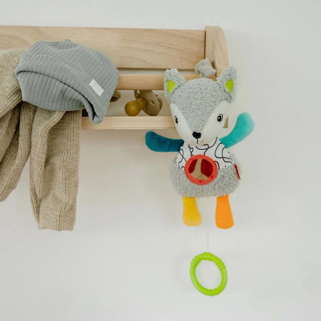Den lille spille-ræv vil dit barn straks forelske sig i – både som den blødeste krammeven og takket være den beroligende melodi "Weißt du wieviel Sternlein stehen". Når du trækker i spilledåsen, lyder den populære vuggevise – en melodi med behagelig lydstyrke og toner, der vugger dit barn i søvn. Det sikre spejl hjælper med at træne selvtilliden.