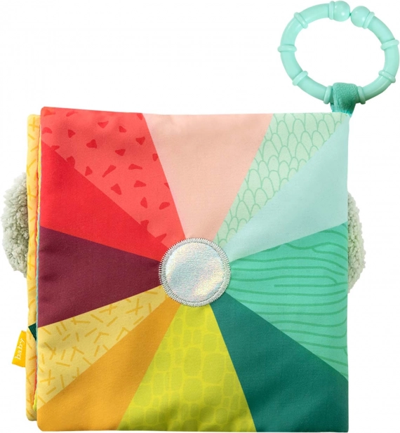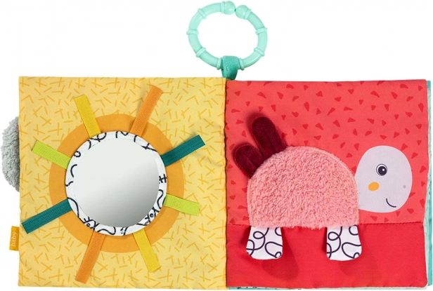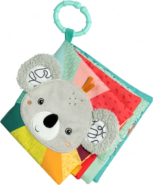 Blød, knitrende stofbog til babyer med bideringe og ringe